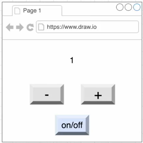 -> on/off 버튼을 누르면 '+', '-' 버튼이 작동을 안하고 색깔이 변한다.