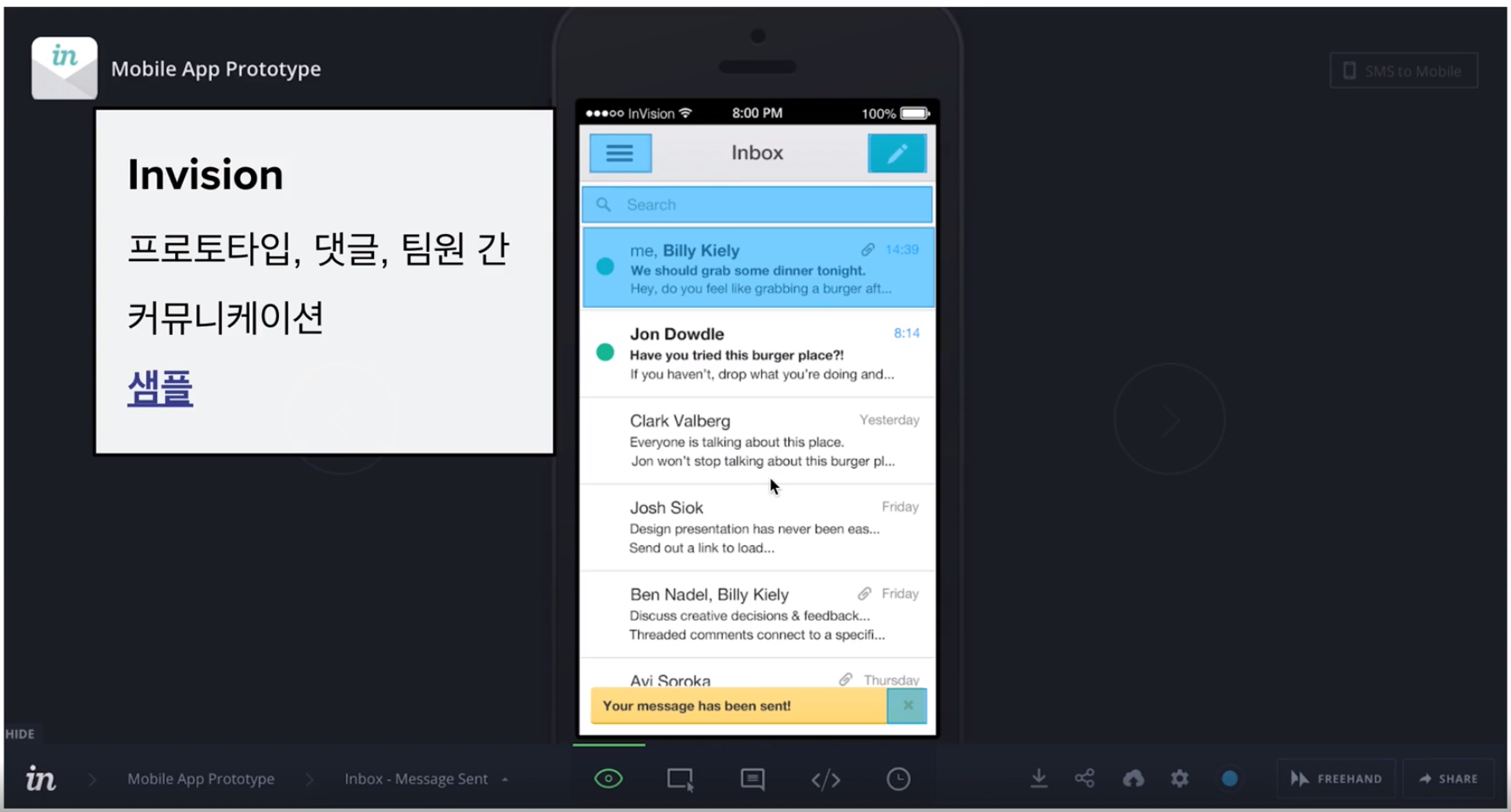 -> 프로토타입 전용 툴. 보통은 스케치에서 만든 화면을 가져와서 인비전으로 프로토타입을 만든다.