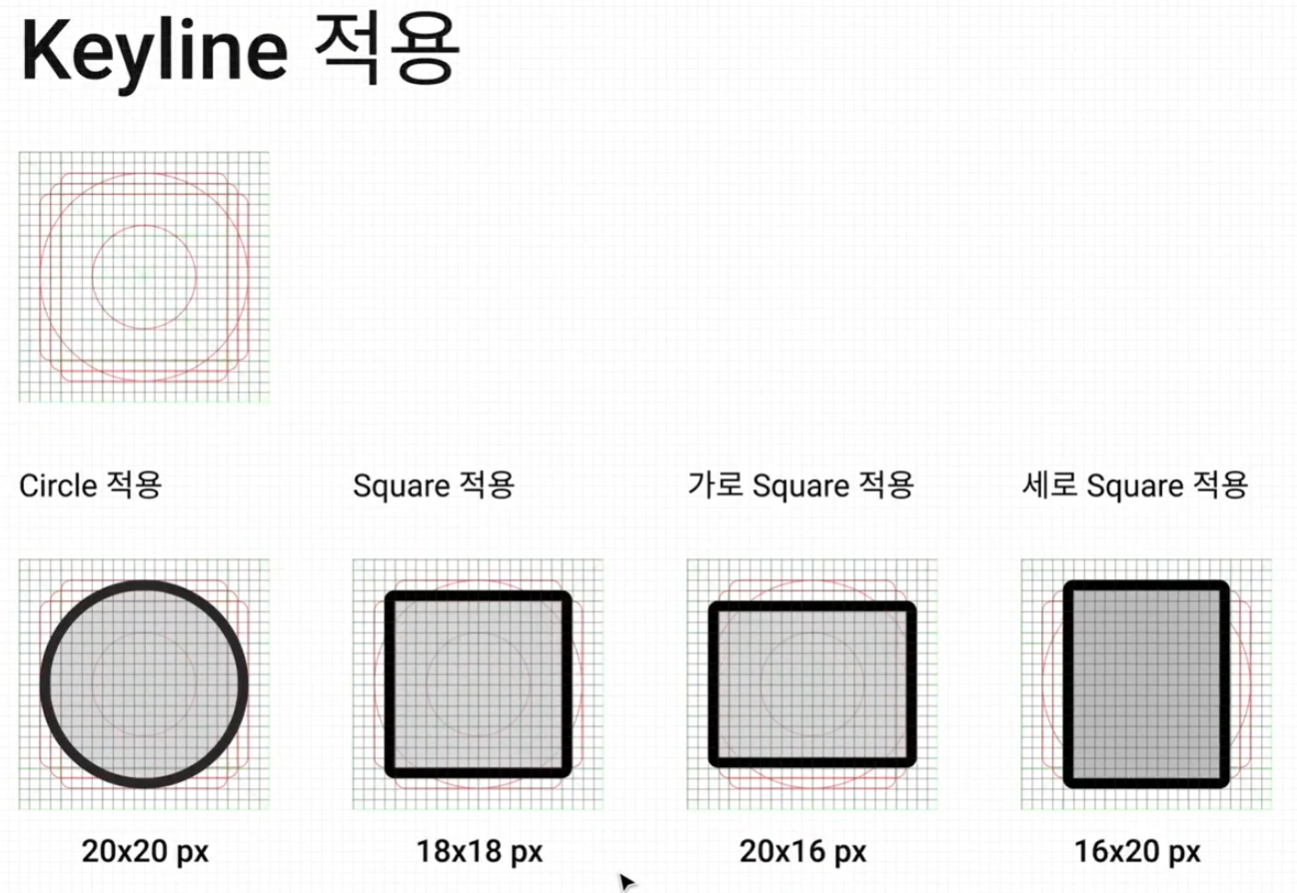 => 즉, 사용자가 두 도형을 일관된 사이즈라고 느끼게 하기 위해서는 아이콘에 따라 사이즈 조정이 필요하다.